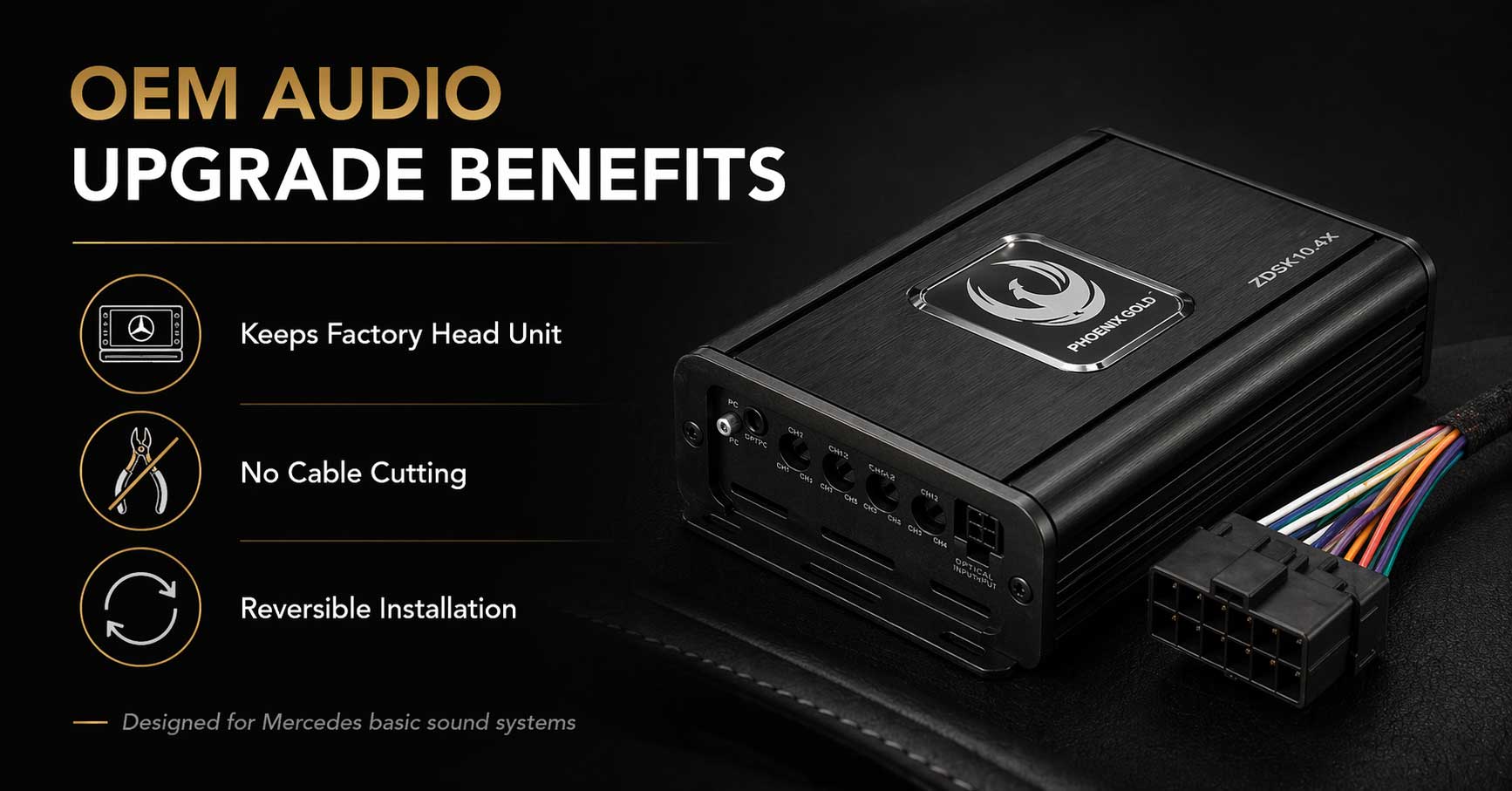 A strong example is the Phoenix Gold ZXMPMB1 Mercedes Plug and Play Power Up Kit