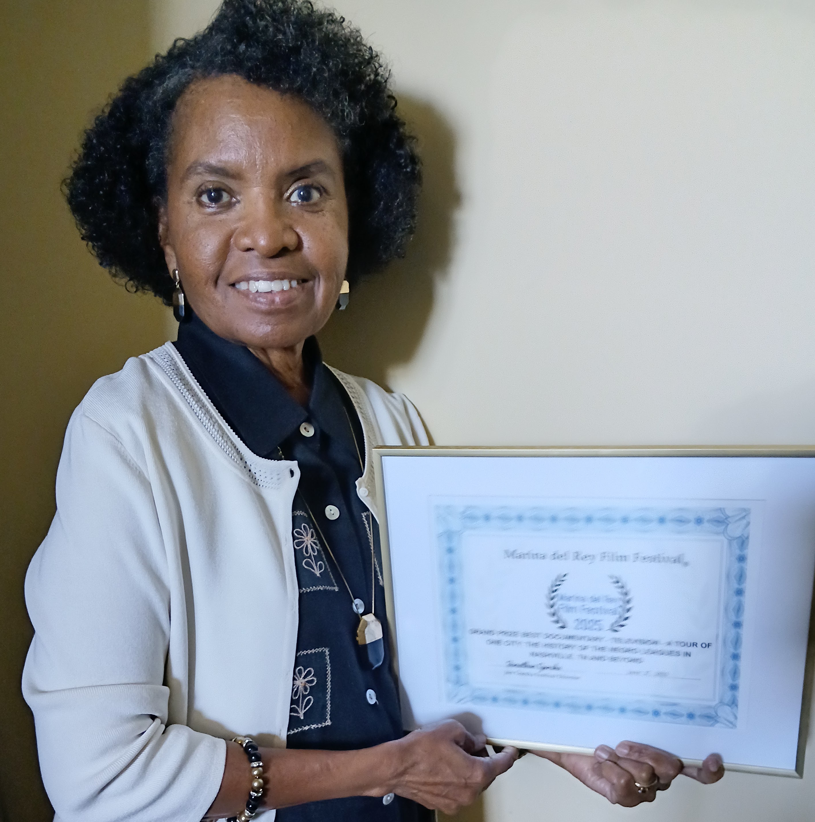 Author/Director/former TSU Professor Harriet Himbro-Hamilton’s film, “A Tour of One City: The History of the Negro Leagues in Nashville (Tennessee) and Beyond,” recently won the Grand Prize Documentary-Television at the Marina del Rey (California) Film Festival. It also received exposure in June at the Charlotte (North Carolina) Black Film Festival.