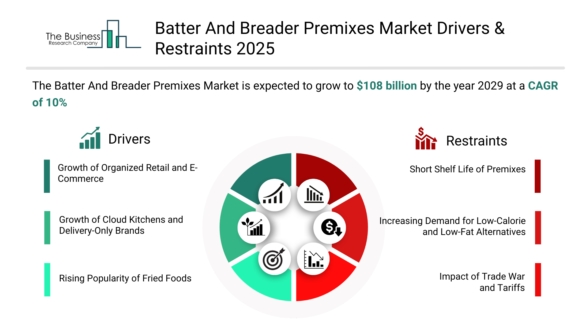 Growth of Organized Retail and E-Commerce – The growth of organized retail and e-commerce will become a key driver of growth in the batter and breader premixes market by 2029. Organized retail and e-commerce refer to structured, large-scale retail formats and online platforms that operate with standardized processes, professional management, and modern supply chains to sell goods and services to consumers. The expansion of organized retail and e-commerce enhances product visibility, accessibility, and distribution reach for batter and breader premixes. Modern retail chains and online platforms provide wider shelf space, diverse product offerings, and targeted marketing, attracting both household and commercial buyers. Additionally, e-commerce enables direct-to-consumer sales and nationwide delivery, driving demand. As a result, the growth of organized retail and e-commerce is anticipated to contributing to a 1.5% annual growth in the market.