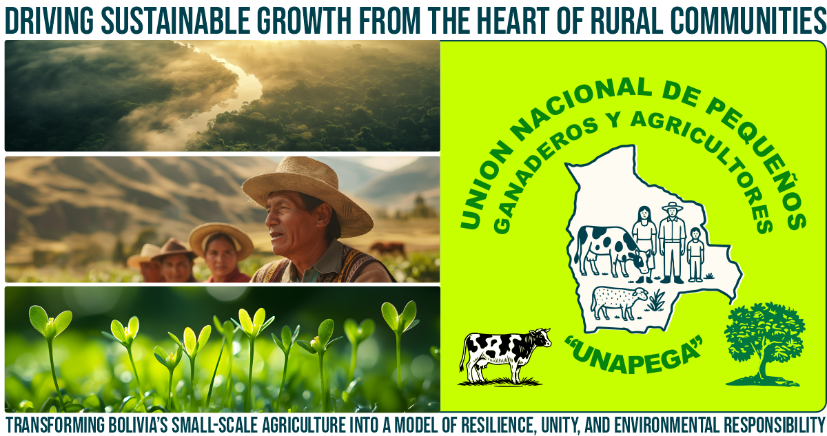 The National Union of Small Ranchers and Farmers (UNAPEGA) is a national grassroots organization legally recognized in Bolivia since 1985. It works to promote the development, production, and commercialization of small-scale agricultural and livestock producers, with a strong commitment to sustainability, gender equality, and community inclusion.