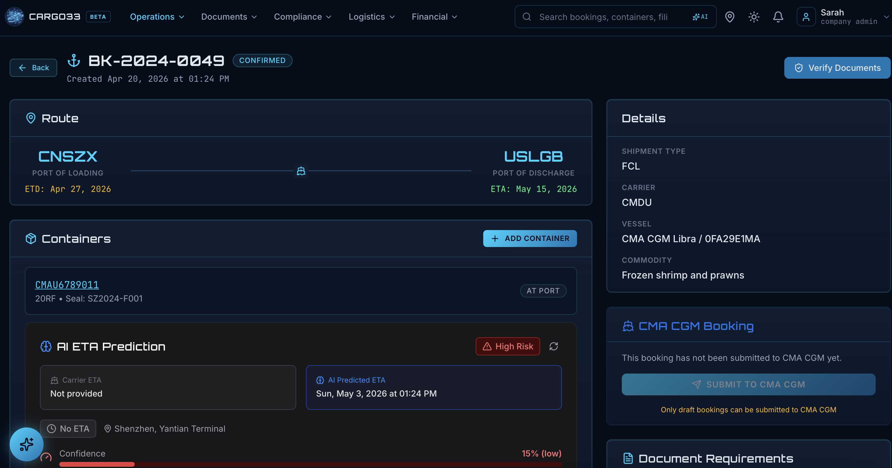 “Forwarders are juggling five, six, sometimes seven disconnected systems just to move a container from Shanghai to Houston,” said Max Posival, CEO of Cargo33. “We built Cargo33 to end that. One platform for bookings, tracking, compliance, documents, and payments.”