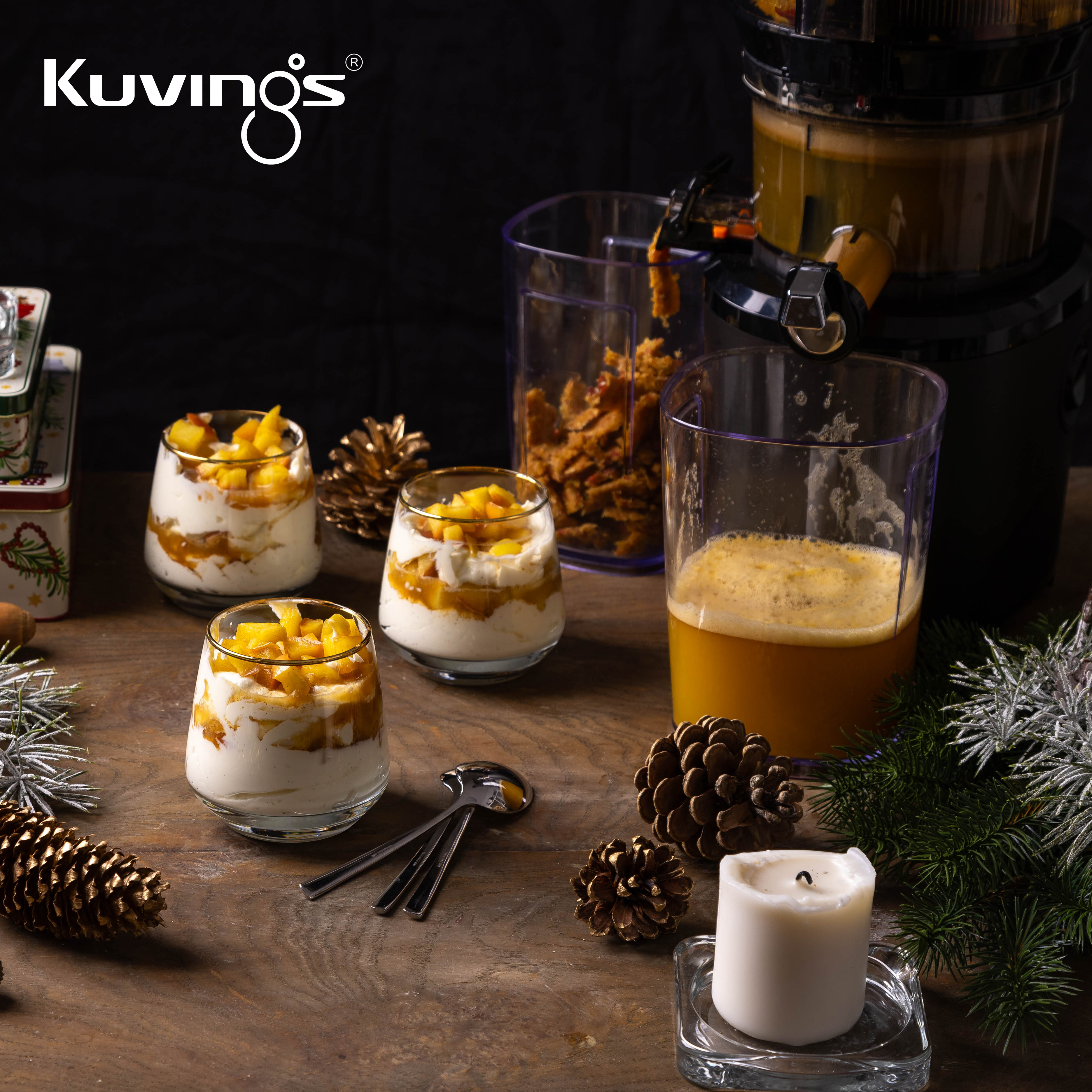 These simple yet festive recipes demonstrate how the Kuvings AUTO10S supports a variety of holiday menus. Equipped with a powerful motor and slow-juicing technology, the AUTO10S is designed to preserve the natural freshness and nutrients of ingredients. Its hands-free operation allows for easy preparation of multiple dishes, making it a practical kitchen companion for creating a well-rounded Christmas table at home.