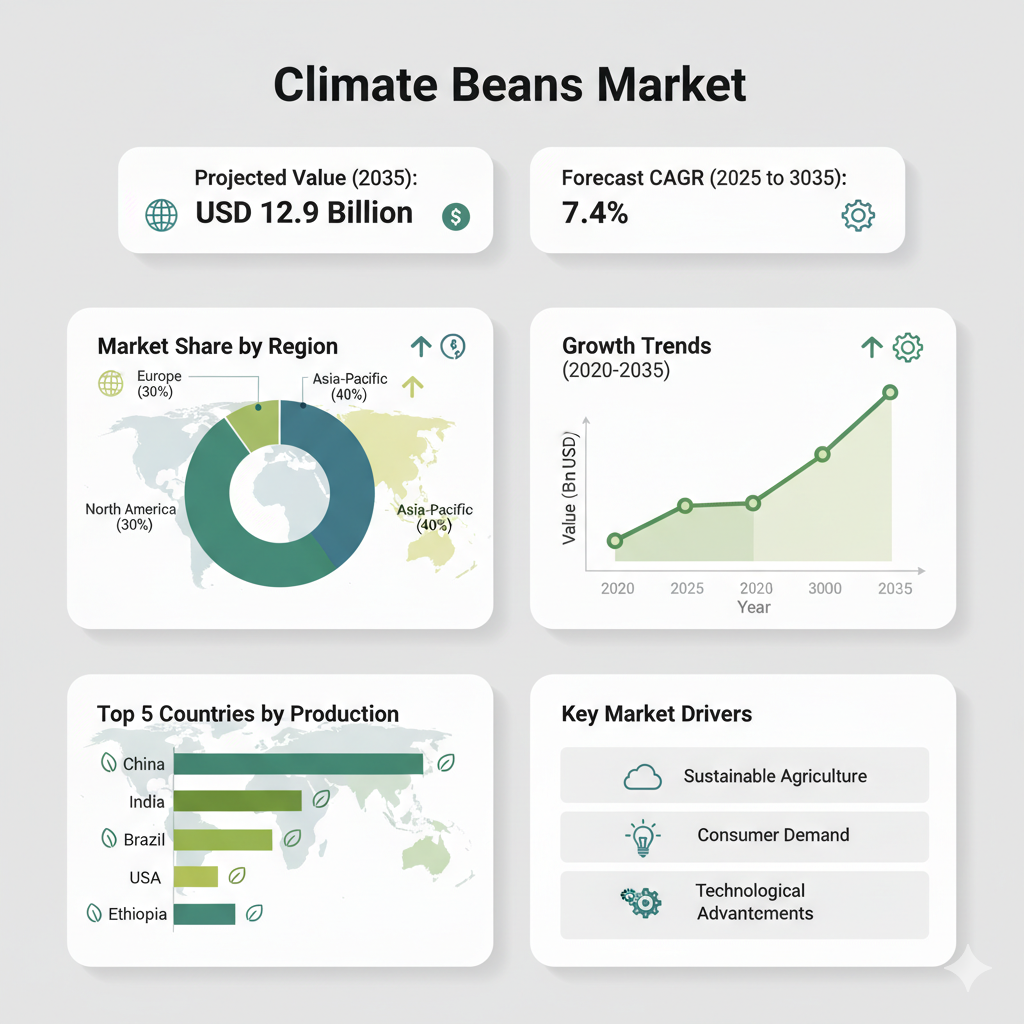 ROCKVILLE, MD, UNITED STATES, October 14, 2025 /EINPresswire.com/ — The global climate beans market is poised for robust expansion in the coming decade. The market is projected to reach USD 12.9 billion by 2035, rising from an estimated USD 6.3 billion in 2025. During the forecast period of 2025 to 2035, the industry is expected to grow at a compound annual growth rate (CAGR) of 7.4 %.