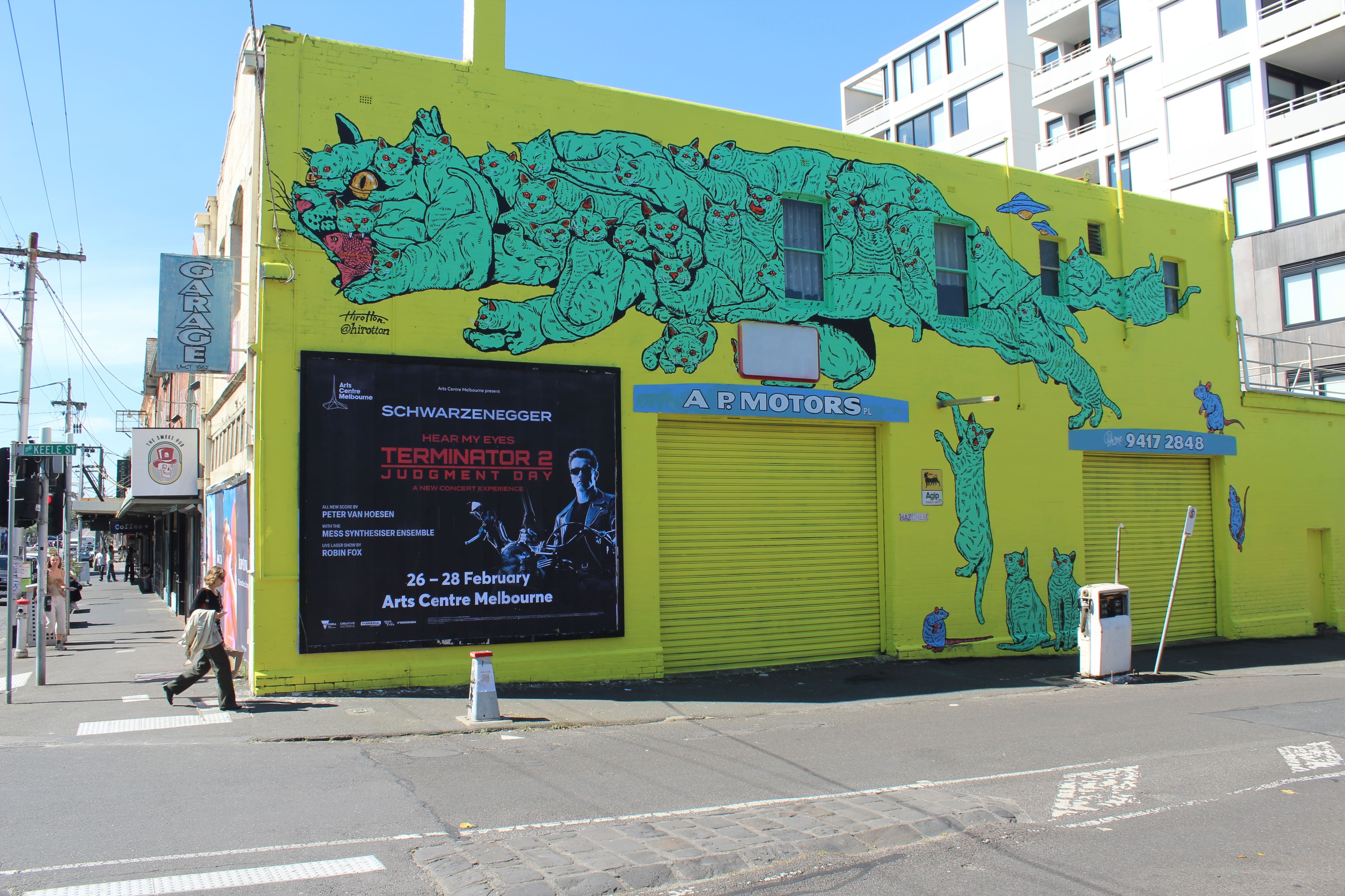 On November 1, 2025, a mural by Japanese artist Hirotton was completed in Fitzroy, the cultural center of Melbourne, Australia. The work was produced as part of the POSCA Mural Exchange Project, in which artists from Japan and Australia who use POSCA markers visit each other’s countries to create murals. The project took place over 17 days, from October 16 to November 1, across two cities: Osaka, Japan, and Melbourne, Australia.
