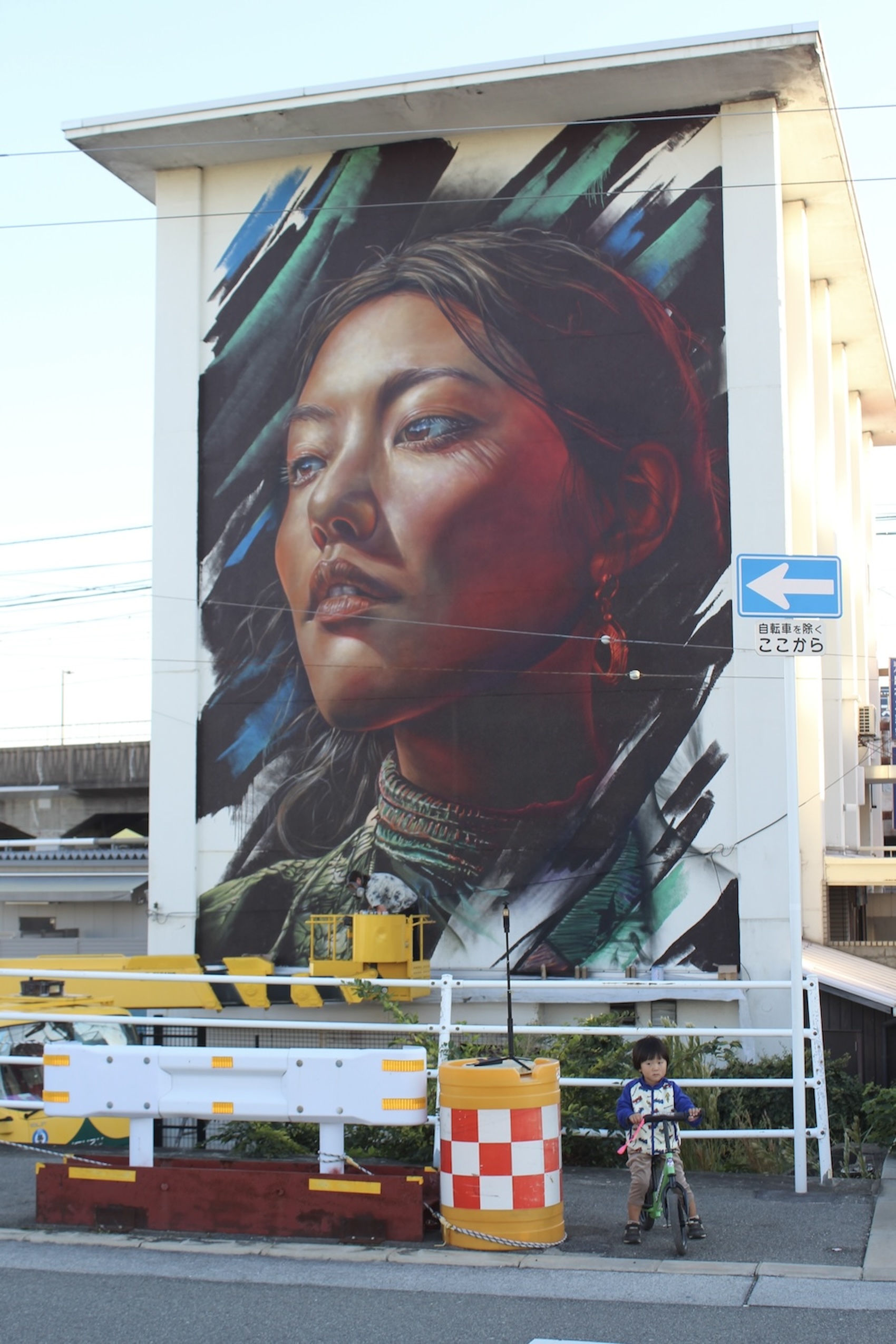 Meanwhile, in Konohana Ward, Osaka, Australian artist Adnate created a mural on a building that had works by two previous mural artists. On the newly painted façade, the eyes of a young girl emerged—shining as if symbolising hope for the neighborhood.