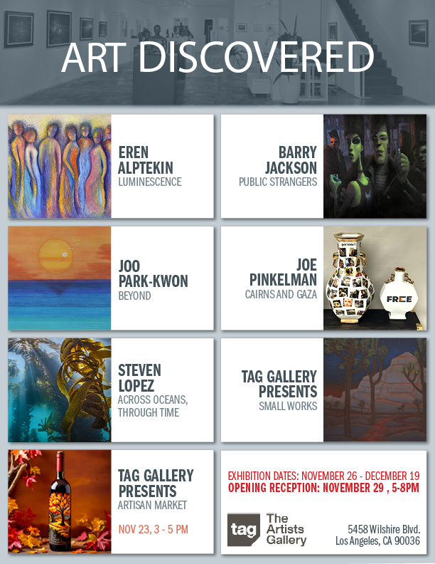 UPCOMING EVENTS at TAG: TAG Premiere Studio Night 12/11 | Artists Talks 12/14 | TAG Black Tie Gala & Fundraiser 12/27 | L.A. Open Awards 1/10/26