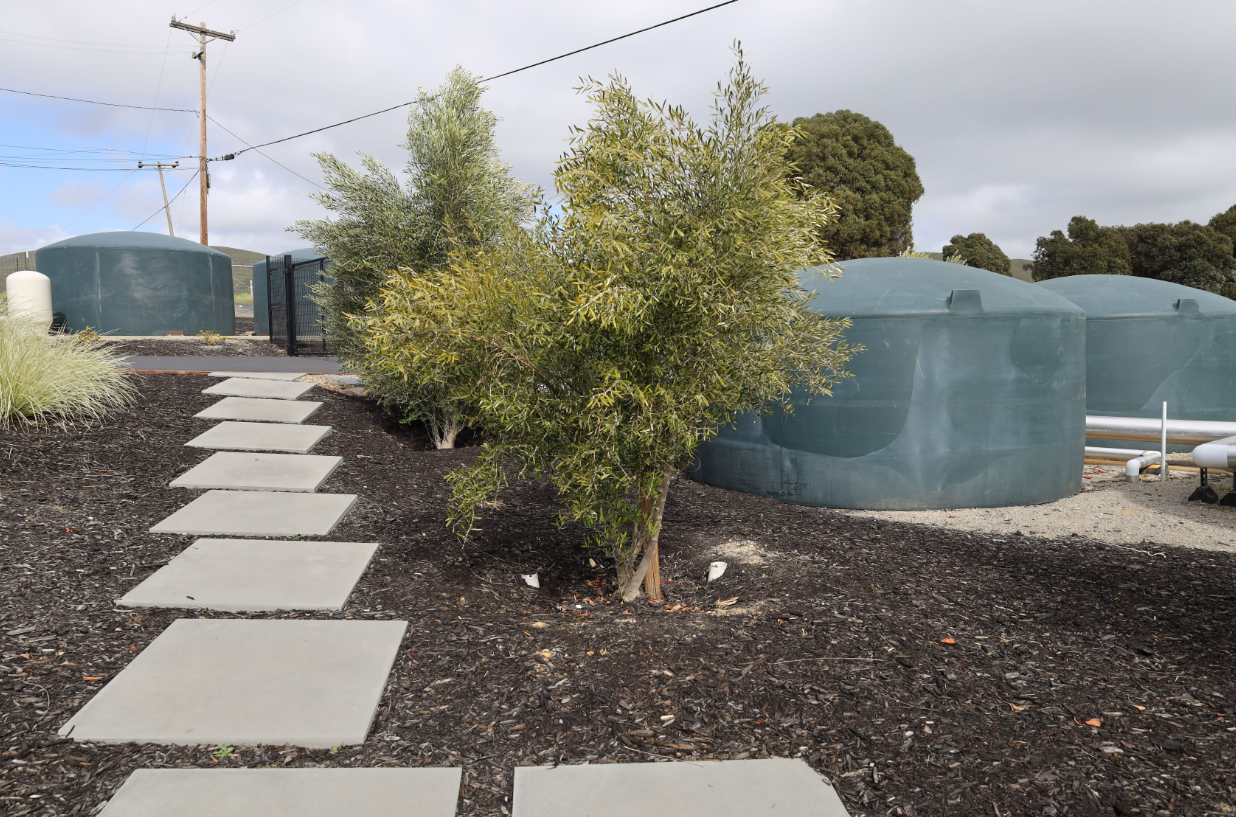Other preventative strategies include reducing plantings directly against the home, replacing wood structures such as decks, fencing, and pergolas with non-combustible materials like steel or aluminum, and using gravel mulches instead of bark. When feasible, water storage tanks provide valuable backup during emergencies, and swimming pools—when present—can also serve as fire breaks and emergency water sources.
