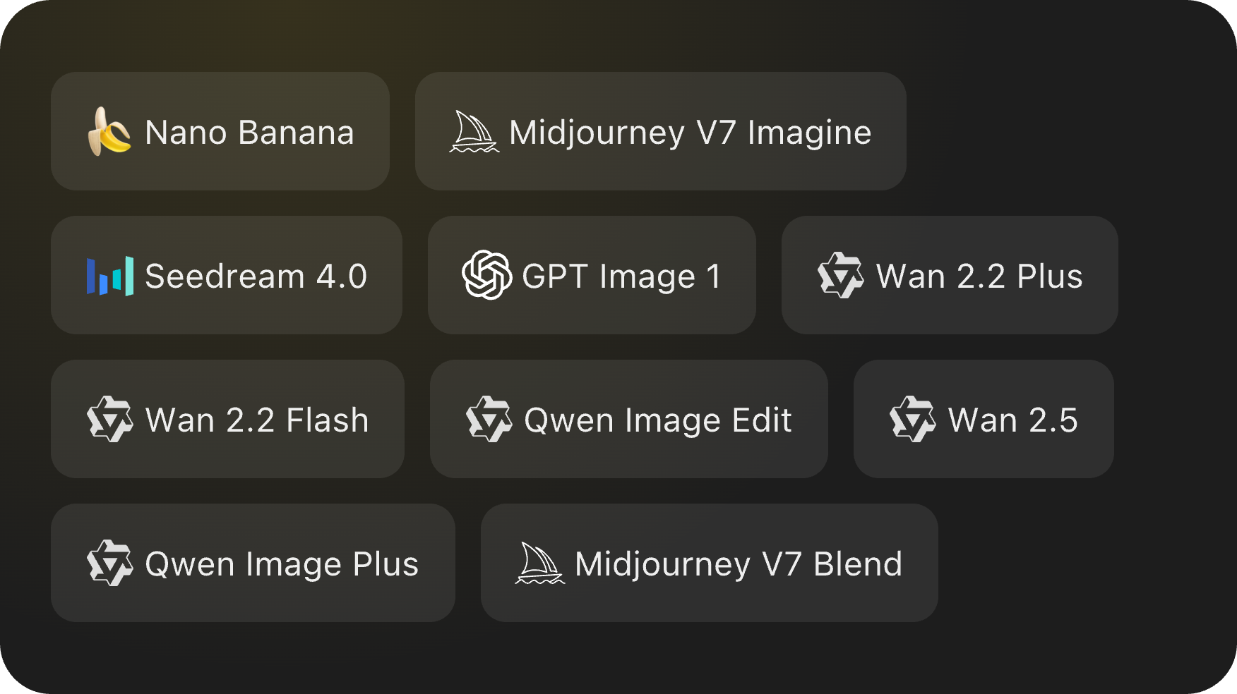 • A large and diverse model library: 40+ top-tier models covering text, image, video, 3D, voice, and multimodal generation.