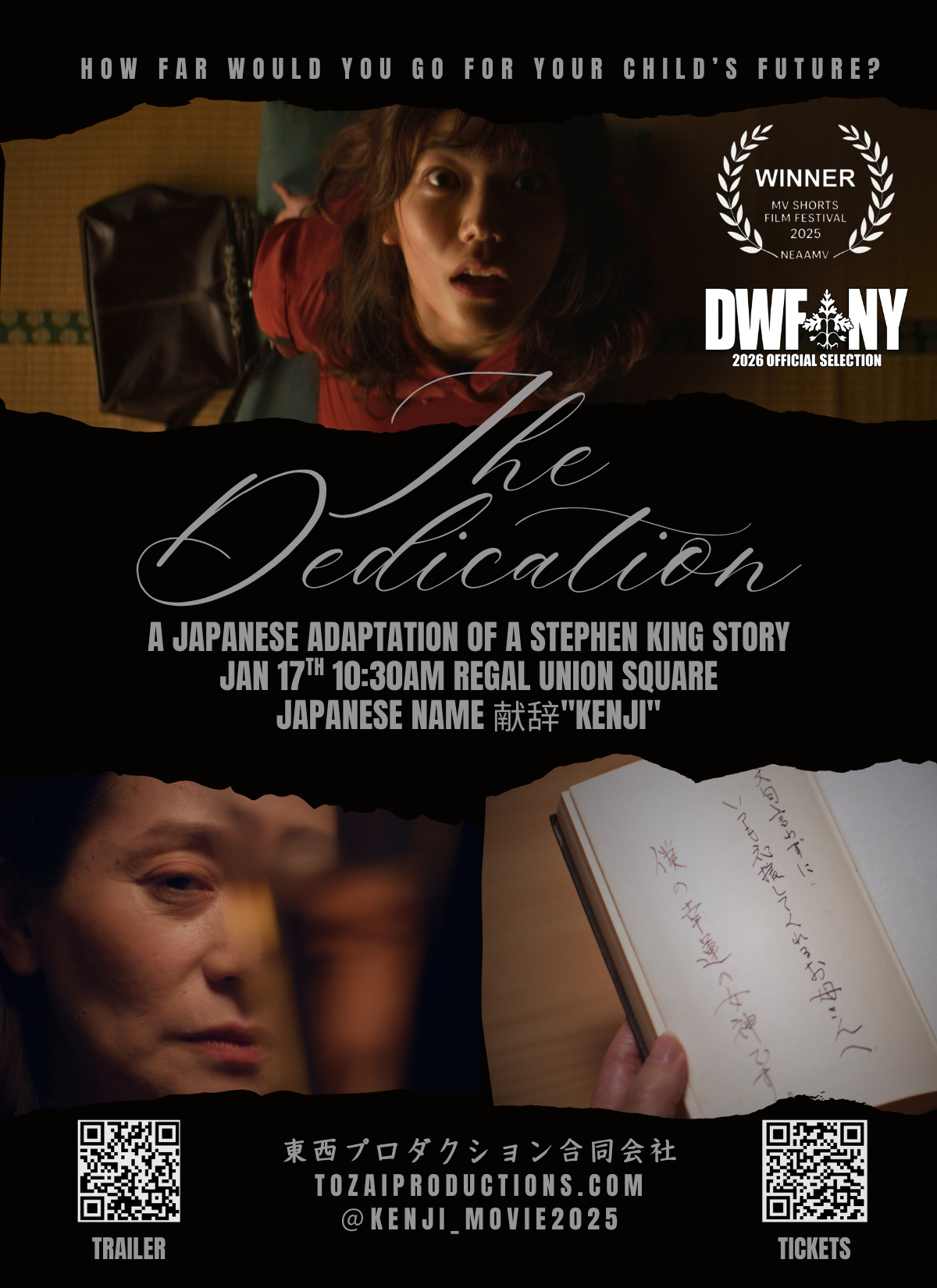SHIBUYA, TOKYO, JAPAN, December 26, 2025 /EINPresswire.com/ — The final Stephen King Dollar Baby and only Japanese adaptation of one of his works will world premiere on January 17th at the Regal Cinema, Union Square as part of the Dances With Film Independent Film Festival. The festival is voted a favorite amongst independent filmmakers and a top 10 festival in all of North America. Tickets: