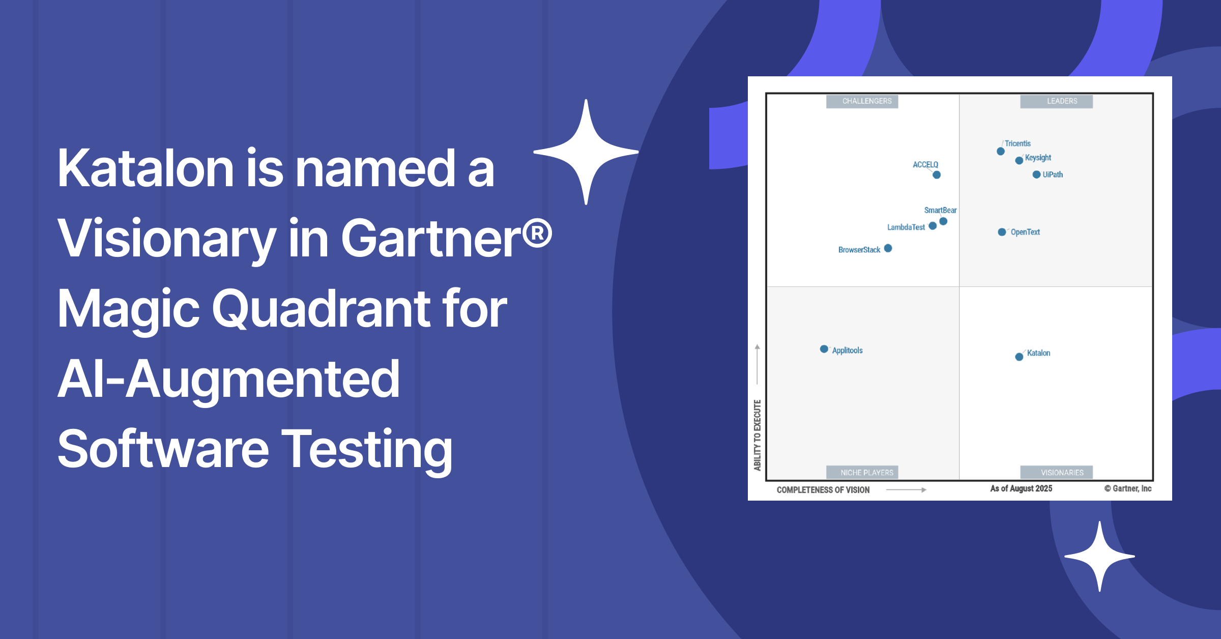 ATLANTA, GA, UNITED STATES, October 9, 2025 /EINPresswire.com/ — Katalon, the AI-augmented quality engineering company, today announced it has been recognized as a Visionary in the 2025 Gartner Magic Quadrant for AI-Augmented Software Testing Tools. We believe this recognition underscores Katalon’s excellence in building the industry’s only AI-native testing platform, which delivers autonomous test creation with TrueTest, advanced AI capabilities in Studio, and enterprise-scale orchestration with TestOps and TestCloud across any deployment model.