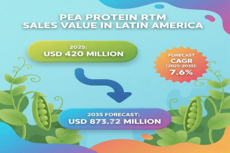 NEWARK, DE, UNITED STATES, October 15, 2025 /EINPresswire.com/ — The market for pea protein RTM dispersibility for shaker formats in Latin America is on a strong growth trajectory, projected to rise from USD 420 million in 2025 to USD 873.72 million by 2035, representing a healthy CAGR of 7.6% over the forecast period, according to the latest industry outlook.