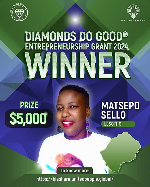 “Entrepreneurs from Lesotho have priority access to the Diamonds Do Good Entrepreneurship Grant. And we look forward to celebrating those who seize this opportunity,” said Yemi Babington-Ashaye. President, United People Global.