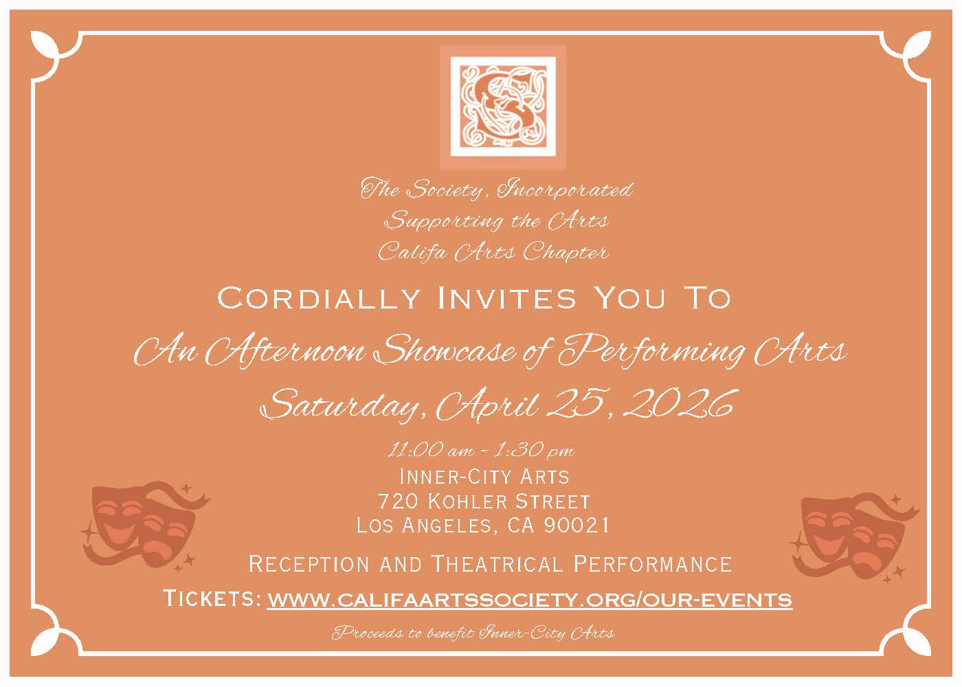 Hosted by the Califa Arts Chapter, the event will begin with a welcoming reception, followed by the featured theatrical performance presented in collaboration with Inner-City Arts—one of Los Angeles’ premier arts education organizations known for fostering creativity, confidence, and collaboration in young people.