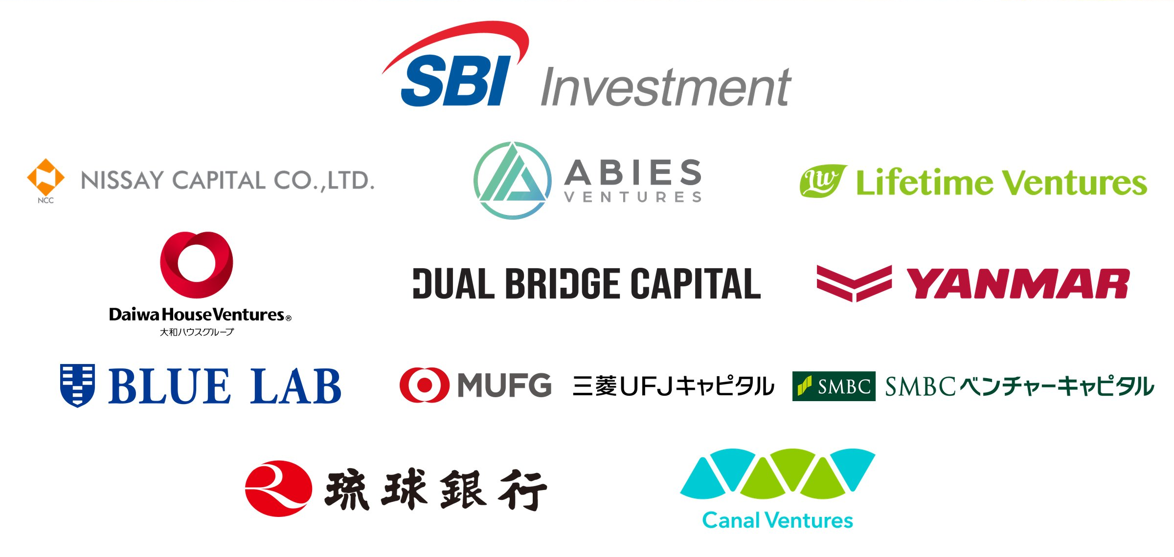 The round was led by SBI Investment, with participation from 12 investors. Participating investors include SBI Investment as lead investor, Abies Ventures, Nissay Capital, Lifetime Ventures, Dual Bridge Capital, Daiwa House Ventures, Yanmar Ventures, Mitsubishi UFJ Capital, Blue Lab, SMBC Venture Capital, Bank of the Ryukyus, and Canal Ventures.