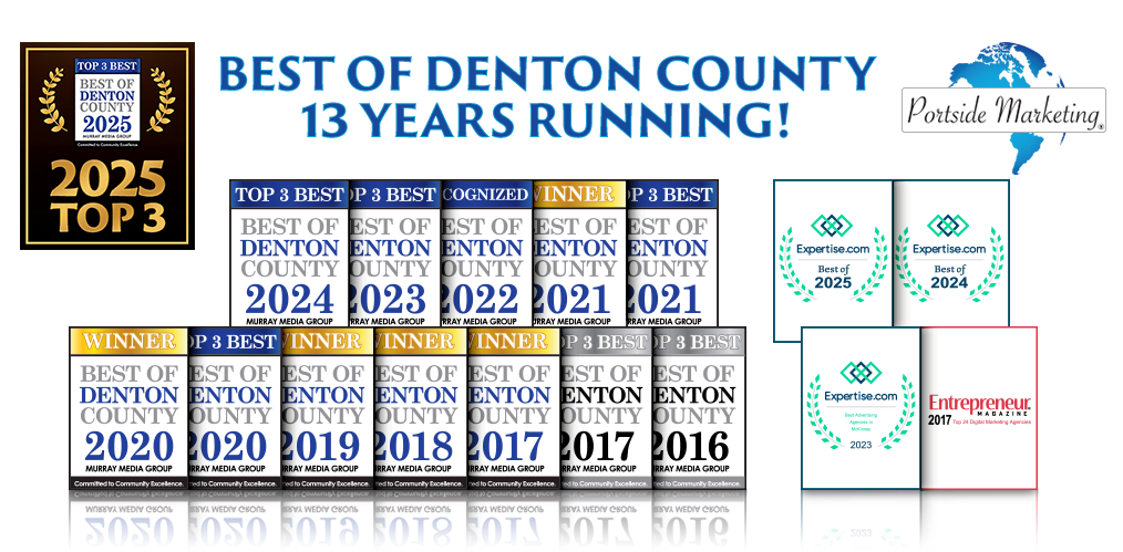This latest recognition adds to a growing list of accolades for Portside Marketing, reinforcing its role as an industry leader. For Denton County businesses searching for a trusted partner in digital marketing, Portside Marketing’s placement among the Top 3 confirms its credibility and expertise in SEO, website design, and logo design.