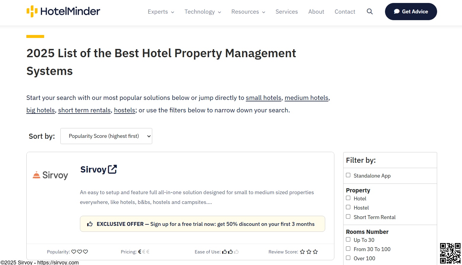This top rating is validated across HotelMinder (#1 Property Management System), Capterra, and GetApp, reflecting a clear market preference. Properties are switching from complex, expensive systems to Sirvoy’s intuitive Hotel Management Software (HMS) because it delivers a complete, reliable solution with transparent pricing and 24/7 human support for hotels, B&Bs, hostels, and vacation rentals of any size.