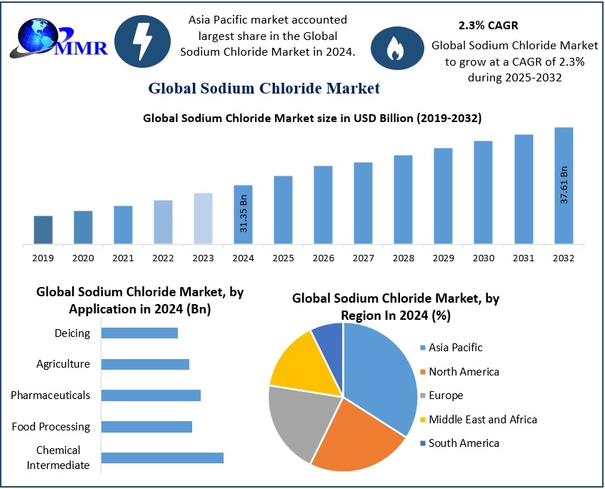 WILMINGTON, DE, UNITED STATES, November 5, 2025 /EINPresswire.com/ — Global Sodium Chloride Market size was valued at USD 31.35 Billion in 2024 and is projected to reach USD 37.61 Billion by 2032, growing at a CAGR of 2.3%.