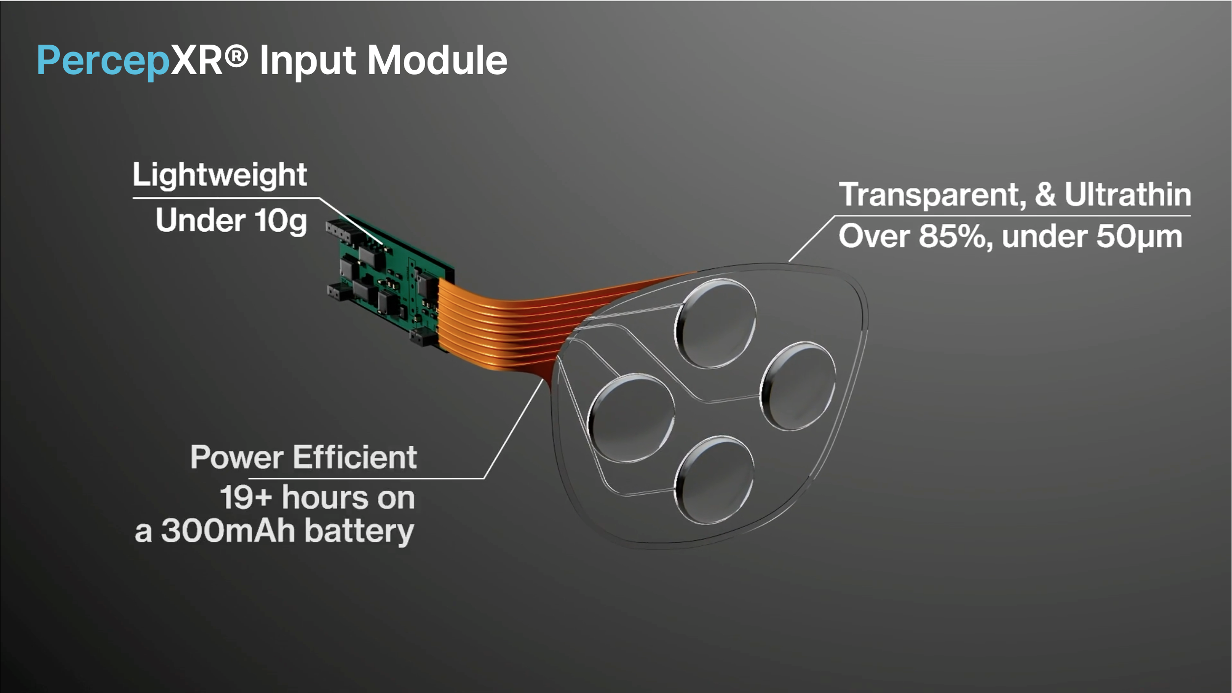 The company’s core product, PercepXR®, stands out for its transparency (over 85%), ultrathin design (under 50μm), and lightweight build (under 10g). It delivers exceptional energy performance—operating for over 19 hours on a 300mAh battery—making it suitable for integration into AR glasses, robotics, smart mobility dashboards, and next-generation human–machine interfaces. By combining Spatial Intelligence, including XR with Vision-Free Electrostatic Sensing, Softionics is redefining the standards for natural interaction and immersive environments.