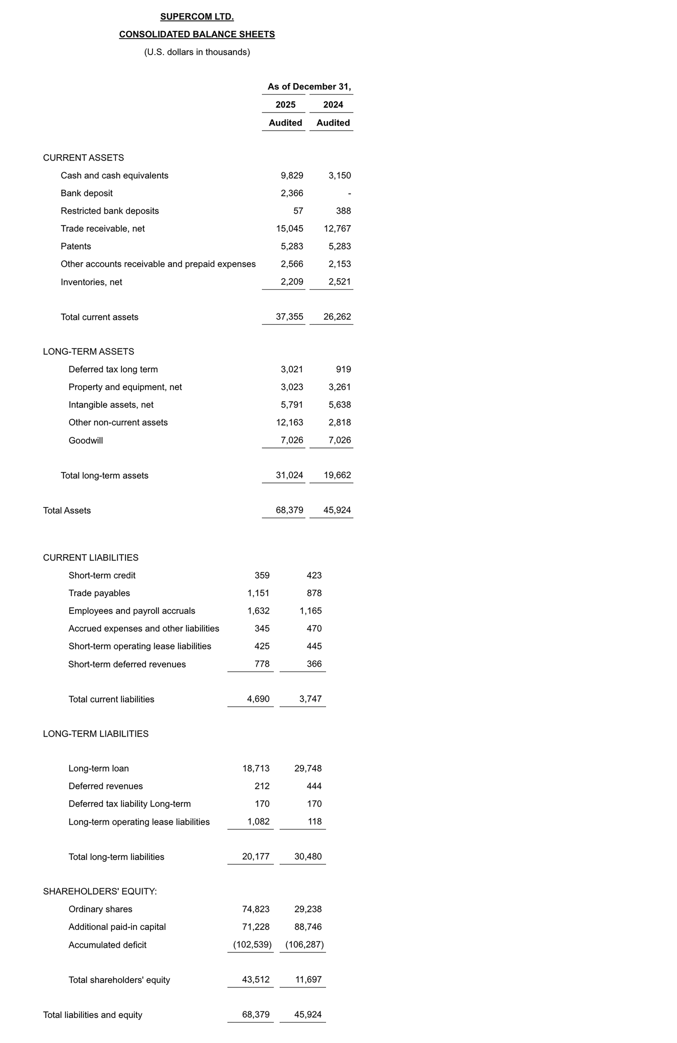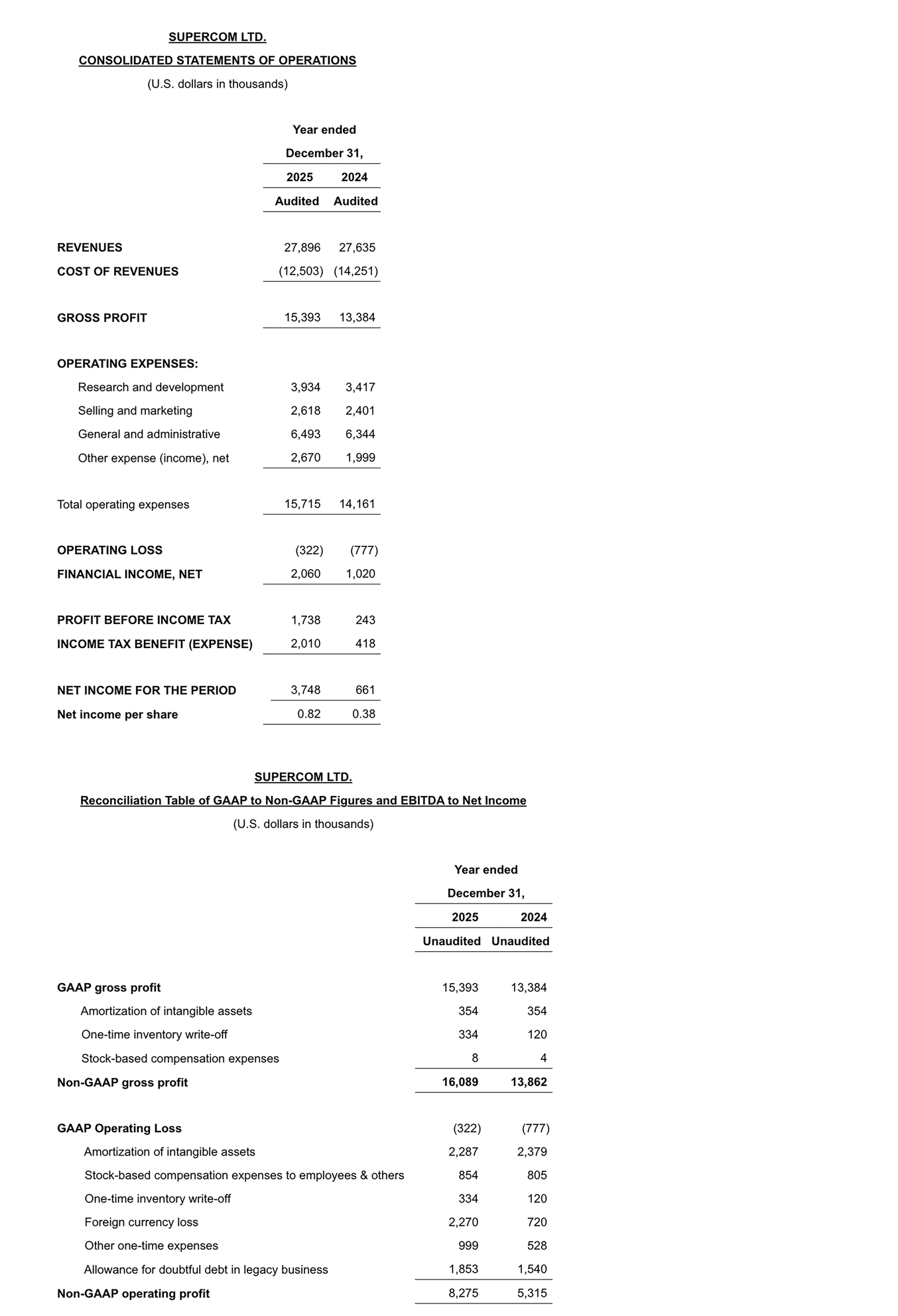 “2025 was a milestone year for SuperCom and a clear demonstration of the strategic transformation we set in motion in 2021,” commented Ordan Trabelsi, President and CEO of SuperCom. “We delivered record annual revenues of $27.9 million, record EBITDA of $9.4 million, and record net income of $3.75 million, while expanding gross margin to 55.2% from 48.4% in 2024. These results reflect disciplined execution across our organization and the growing global demand for our public safety and electronic monitoring solutions.”