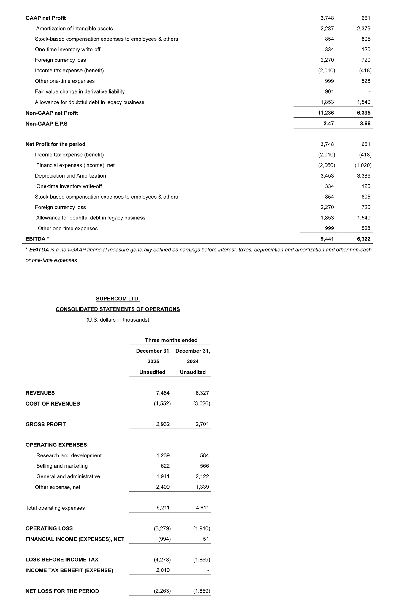 In addition to disclosing financial results calculated in accordance with the generally accepted accounting principles in the United States (“GAAP”), this release also contains non-GAAP financial measures, which SuperCom believes are the principal indicators of the operating and financial performance of its business.