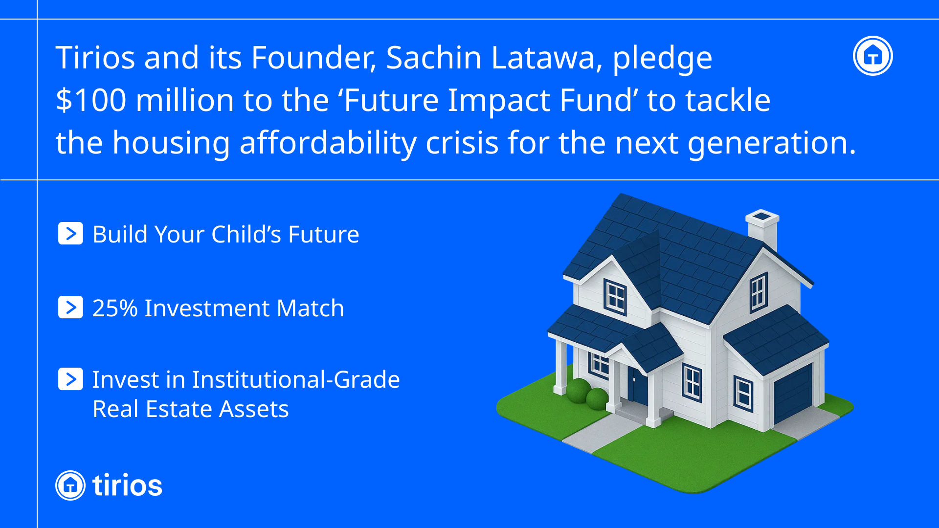 Tirios & its Founder Sachin Latawa pledge $100M to Tirios Future Impact Fund, with 25% investment match to tackle the housing affordability crisis.