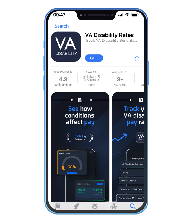 VA Disability Rates Calculator is available as a free download on the App Store and Google Play, with an optional Pro upgrade.