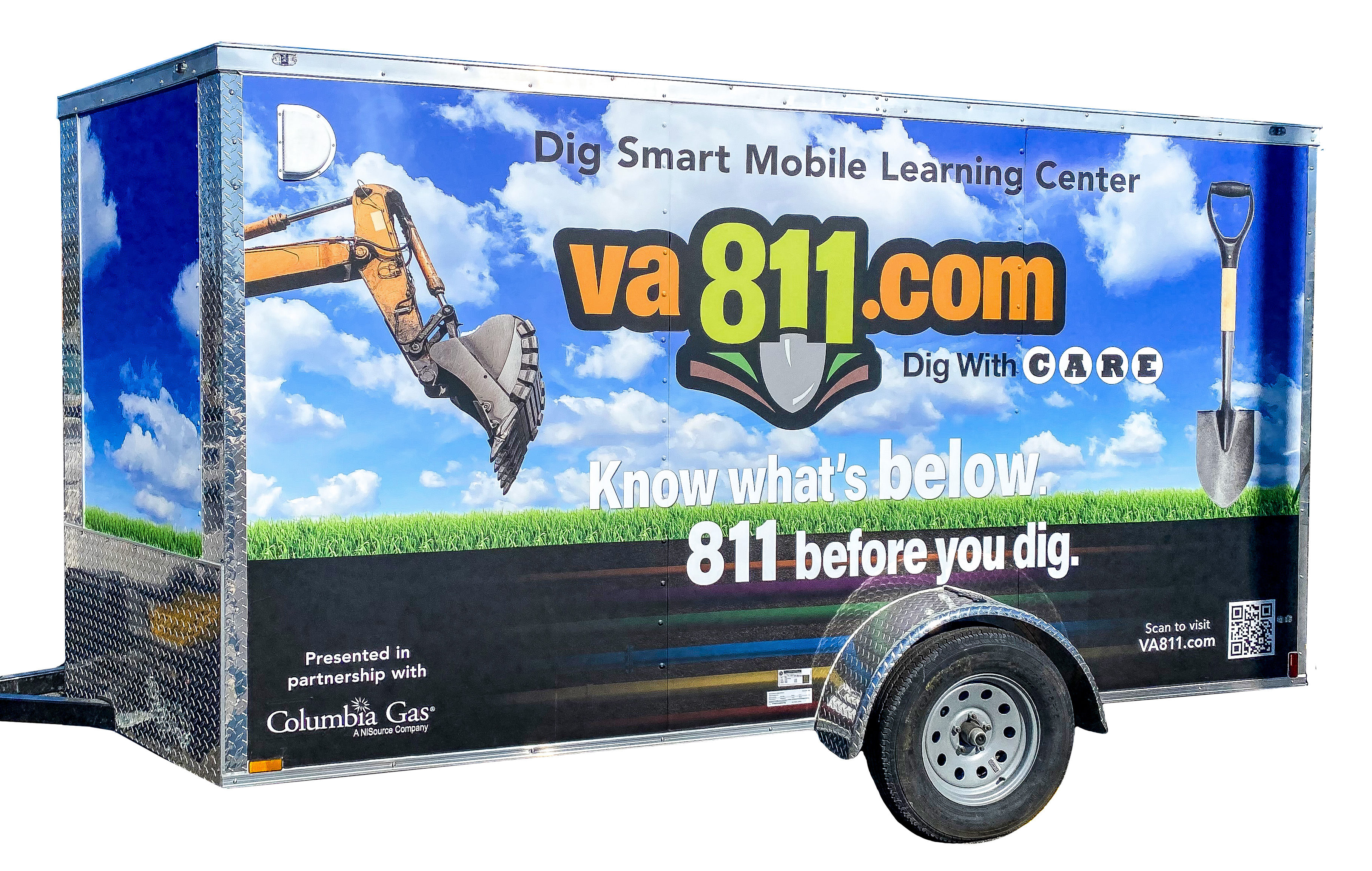 The Dig Smart Mobile Learning Center trailer brings hands-on 811 safety lessons to schools and community events across Virginia.