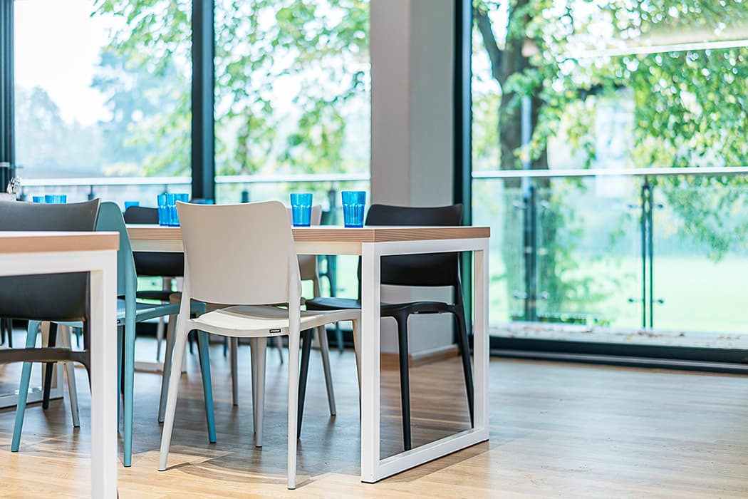 Ein Beispiel für diesen Ansatz ist die Stuhlkollektion JOY von PAPATYA. Die Modelle bestehen aus glasfaserverstärktem Polypropylen und sind für Belastungen bis 200 Kilogramm ausgelegt. Diese Werte wurden durch unabhängige Belastungsprüfungen des Instituts GATAS bestätigt. Die Stühle wurden gezielt für Bereiche mit hoher Frequentierung entwickelt.